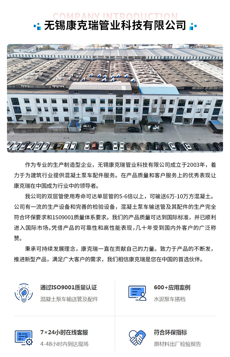 23年专注泵车、布料机砼泵管及备件研发、生产、销售