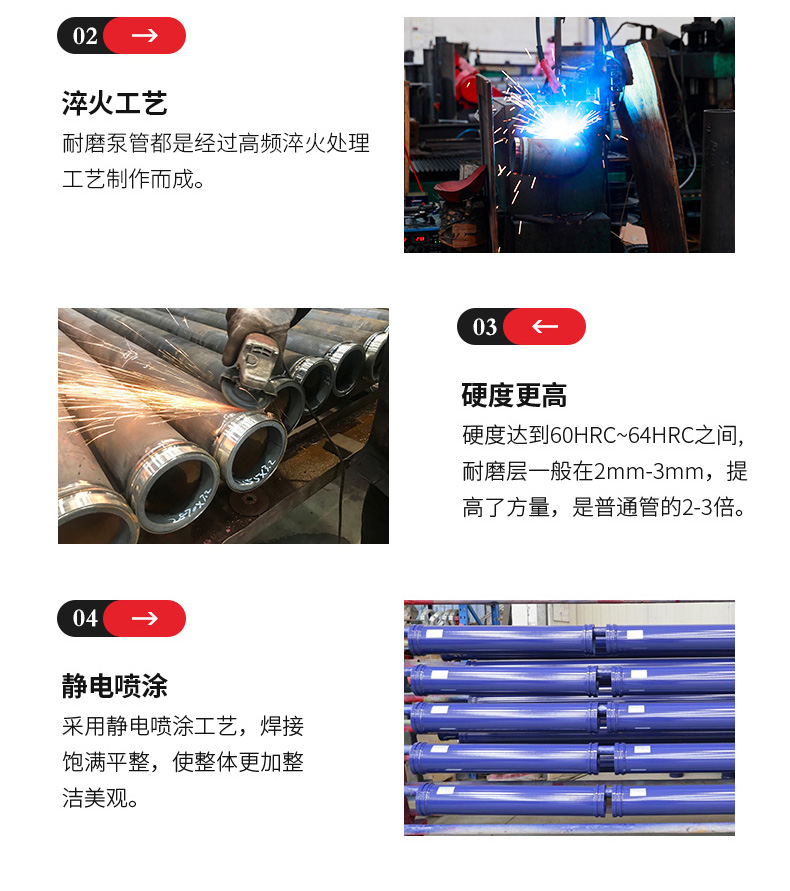 我们的超耐磨臂架管在连接弯管的一端增加了额外的碳化铬保护套,减少额外的冲击,增加使用寿命。